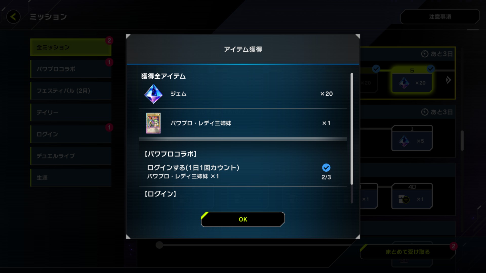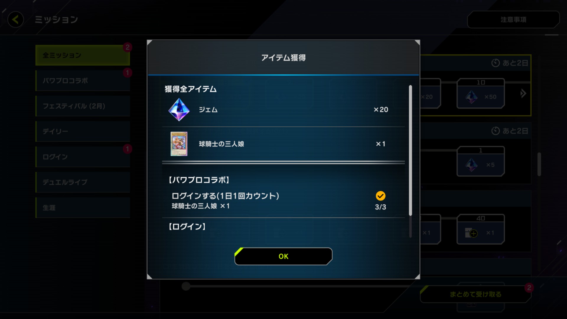 さっそくログインしてコラボカードをゲット